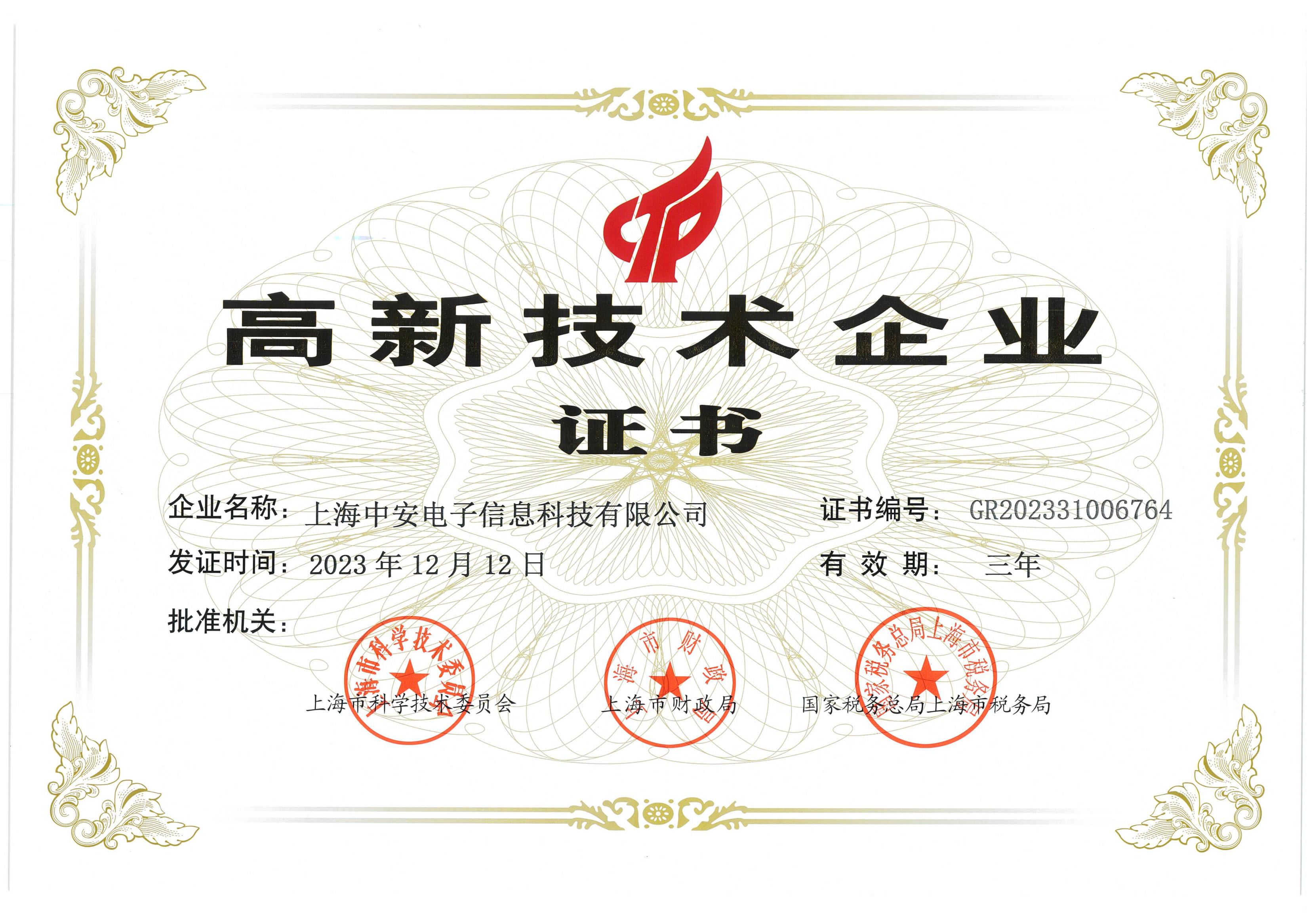 中安科技再獲“高新技術企業”認定!(2024/03/04)
