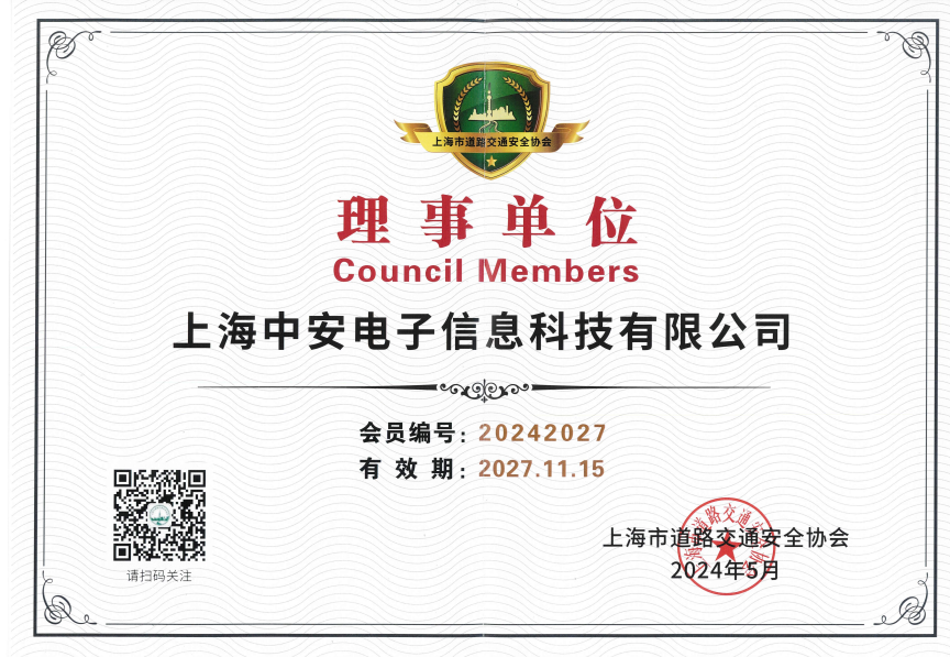 中安科技榮膺上海市道路交通安全協會理事單位稱號(2024-07-28)